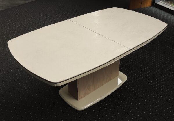 - Funkcja rozkładania jest również rewelacyjnie prosta, poprzez zastosowanie mechanizmu, który podczas rozsuwania blatu sam wyjmuje lub chowa wkładkę poszarzającą blat.